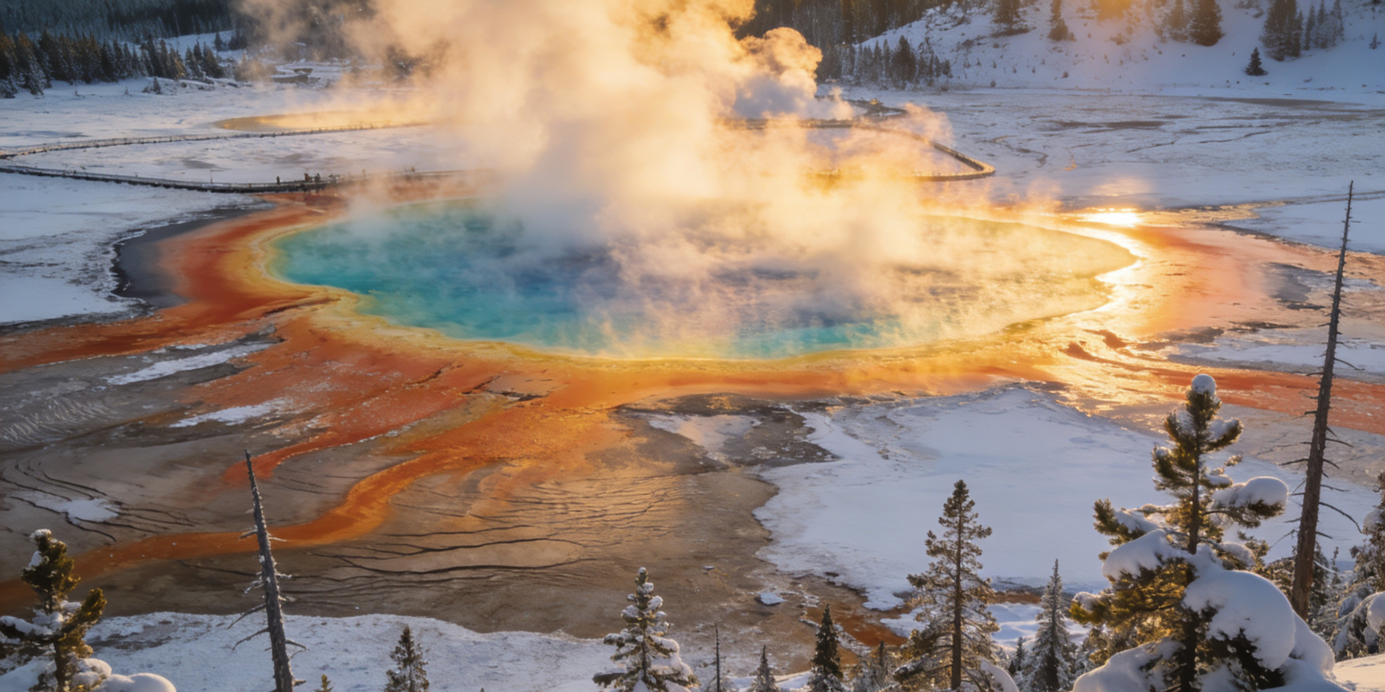 To shoot the Grand Prismatic Spring, hike to a higher viewpoint early in the morning when directional sunlight enhances the vivid color rings. Wildlife photography is best at dawn and dusk, when side lighting reveals texture in fur and creates cinematic low-contrast backgrounds. A telephoto lens keeps subjects safe while compressing landscape depth beautifully. In winter, steam rising into cold air produces surreal, dreamlike atmospheres.