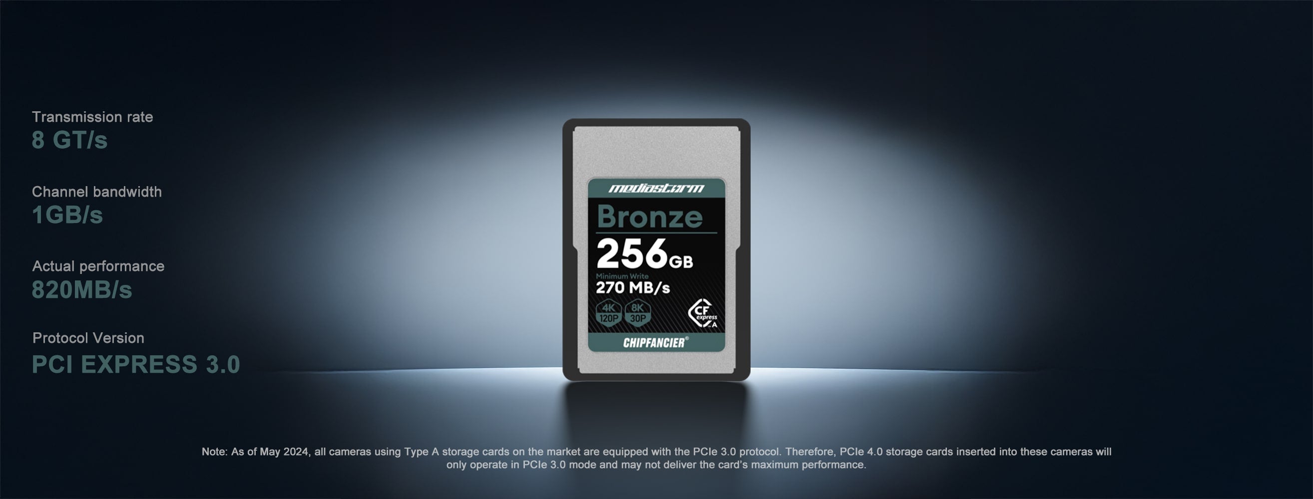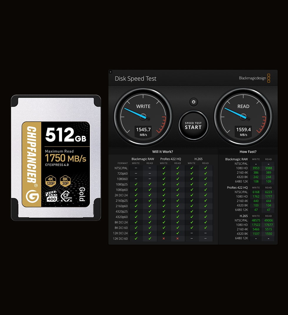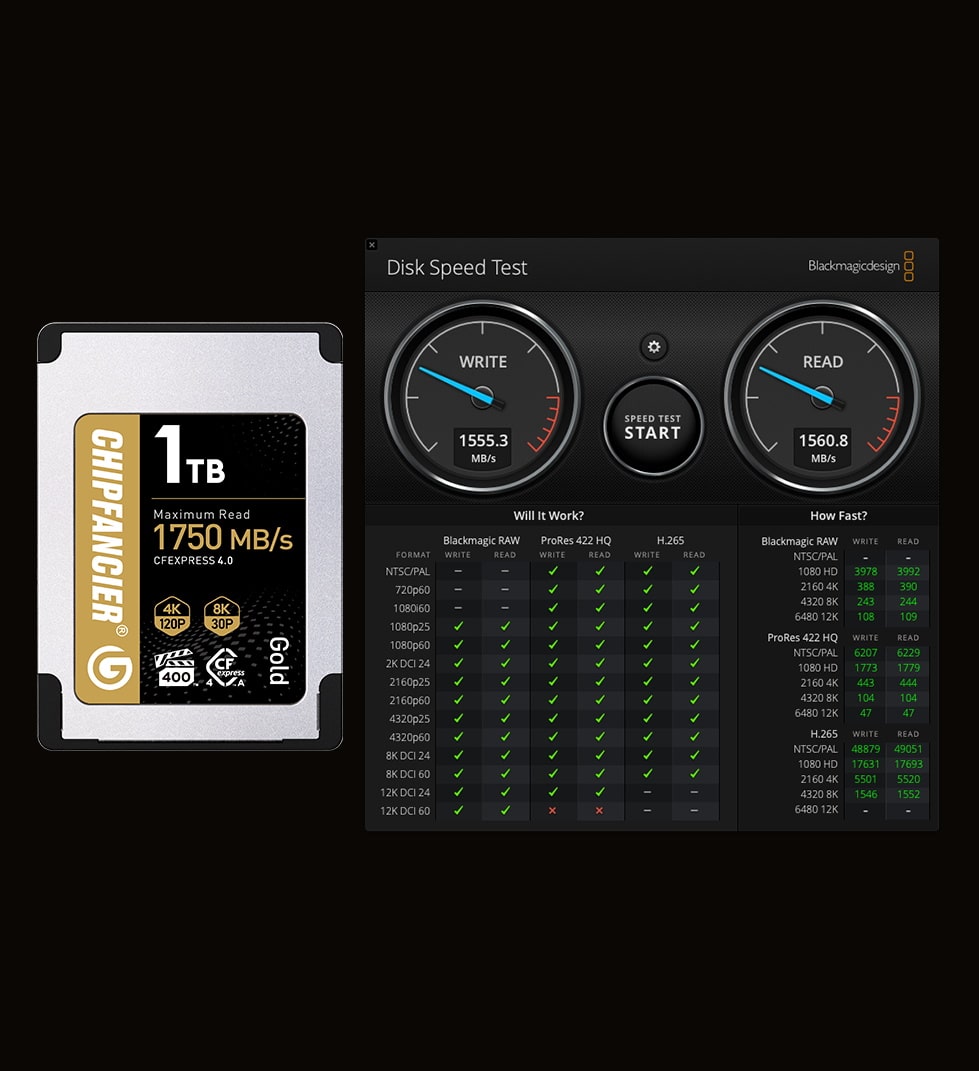 A: Gold CFA4.0 adopts PCle4.0 protocol, which doubles the bandwidth compared to the old CFA card, and together with the new master control and FLASH can run at higher frequency, so the performance is greatly improved. However, as of May '24, all cameras sold are PCIe 3.0 protocol, and can't utilize the full performance of PCle4.0. Our detailed data are all real-world tests, but please note that.