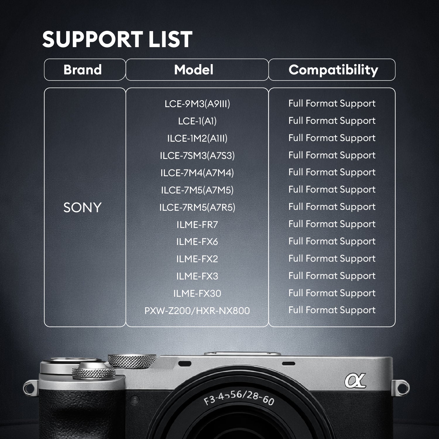 A: Our memory cards support all shooting modes on all currently available Sony cameras, with no need to differentiate between camera models or versions.