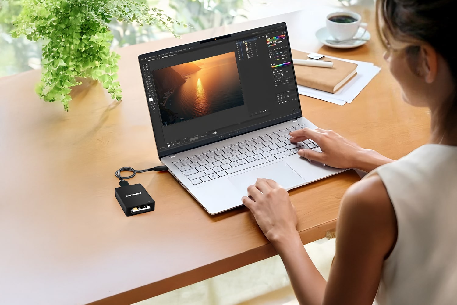 Adopts USB 3.2 Gen 2 interface with data transfer speed up to 10Gbps, dramatically shortening the export time of 4K/8K video and RAW photos.